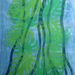 Axis Gallery is pleased to announce Dixie Laws’ exhibition titled Leaves, Series II. Laws will exhibit new linoleum and monotype prints based on the leaf shape. Following her last show working with the philodendron leaf shape, the current work continues in the same vein. This series of prints works with transparency and more dimensional space. Most of the prints use several layers of ink and some use layers of fabric and netting to provide an illusion of three dimensional space. This adds to the mystery of the images.