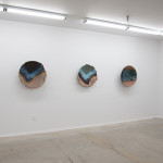This series of works by the artist consists of substantial, approximately circular, 2 ft plus in diameter works in clay. Heavily textured with rich glaze combinations poured over them, these works may seem to suggest landscapes, seascapes, deep space or other inferences to the viewer. In fact, to the artist, these works are non-objective explorations of color, form and surface.