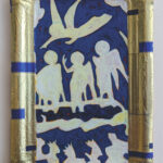The exhibition includes drawings, paintings and collages in which the viewer will find bits of maps, train tickets and other travel ephemera, as well as the occasional glimmer of gold leaf.