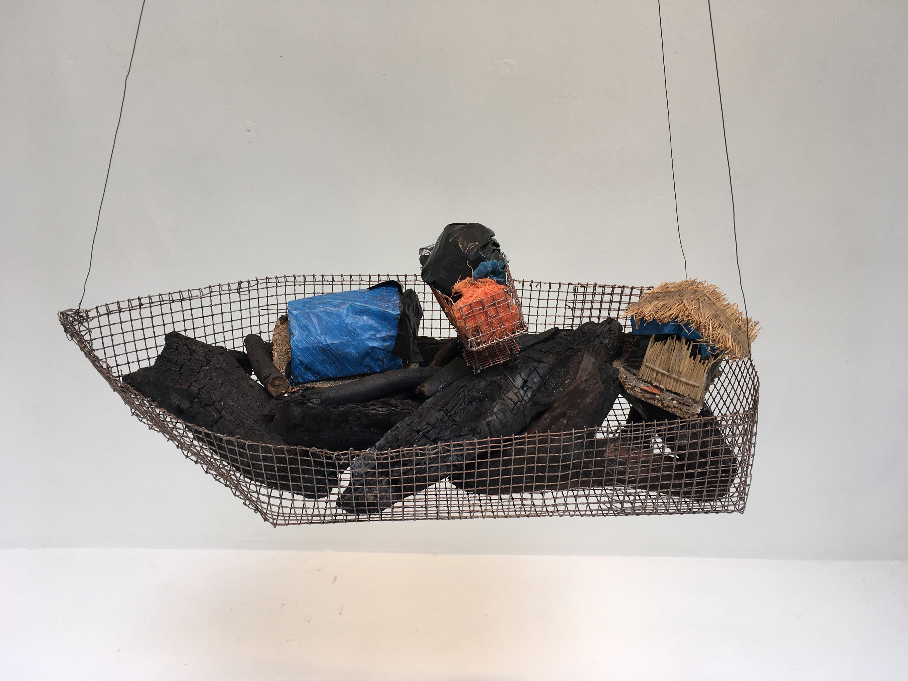 Burnt Wood, Plastic Sheet and Wire, 5 x 6 x 18 inches