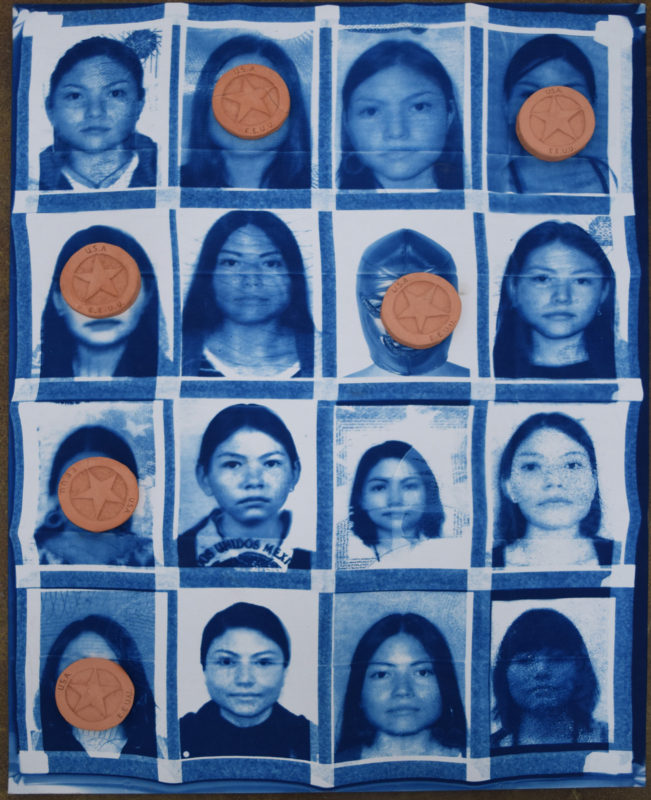 36 x 48 x 4 inches, Cyanotype on Fabric, Wood and Ceramic